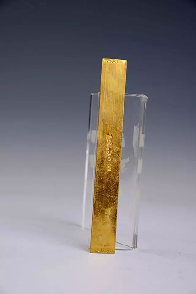 金质薄片,窄长方形,正面居中戳印“韩四郎十分金”,背面戳印“宋宅西”,标示了当时锻造工匠或店铺名号、黄金成色、锻造地点等。目前发现的一两重南宋金铤,主要集中在浙江、江苏、安徽等地出土。南宋金铤的形制保留直形,主要是出于铸造工艺上的原因。其制作较为规范,尺寸、重量、成色都有相对统一的标准,这说明当时金铤的打造是根据一定标准,显示一定的价值以便于流通。这与大小不一、或薄或厚、轻重有别的唐代金铤上贡、进献的职能有本质的区别。
