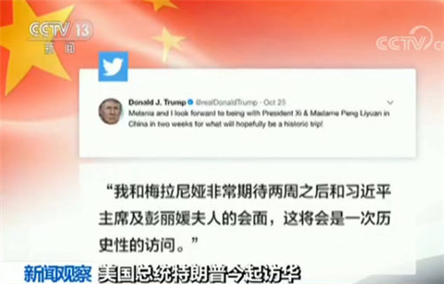 出发前,特朗普在接受美国媒体采访时表示,他和习近平主席目前处在最佳的领导人之间的关系。两周前,特朗普本人还曾在社交媒体上写道:我和梅拉尼娅非常期待两周之后和习近平主席及彭丽媛夫人的会面,这将会是一次历史性的访问。