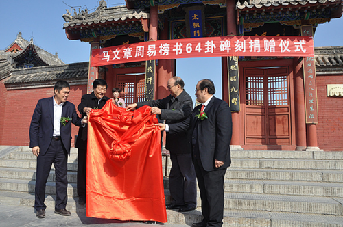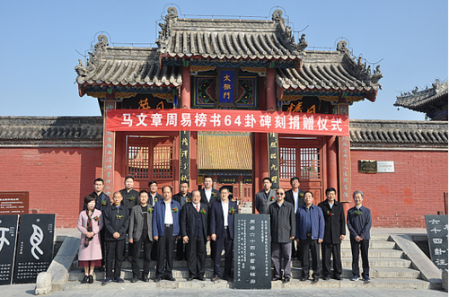 河南省慈善总会会长邓永俭说:多年来,马文章先生带领他的团队一直把中华传统文化的挖掘、传承、弘扬和创新,作为整体工作的主导方向,把对传统文化的传播、交流、发展与奉献社会公益事业相结合,积极组织开展各种形式的文化交流和公益活动,取得了显着成效,产生了积极影响。为给广大群众永久展现这套书法作品,马文章先生捐款制作,并将作品捐赠给家乡周口淮阳,这充分体现了马文章先生热爱家乡的大爱情怀。这套周易榜书书法碑刻作品与太昊陵的结缘,同时也为河南省政府提出的建设“华夏历史文明传承创新区”增加了一抹亮彩。