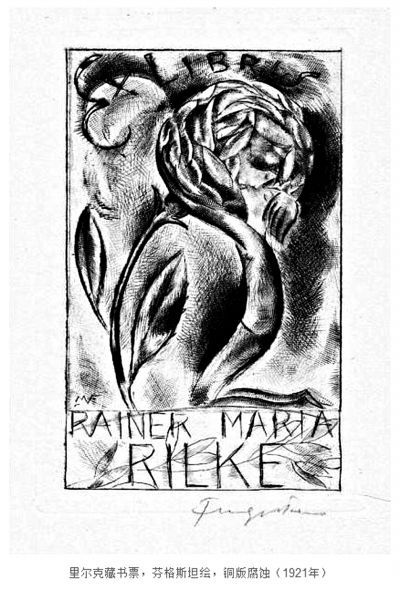 里尔克藏书票,芬格斯坦绘(1921年)。