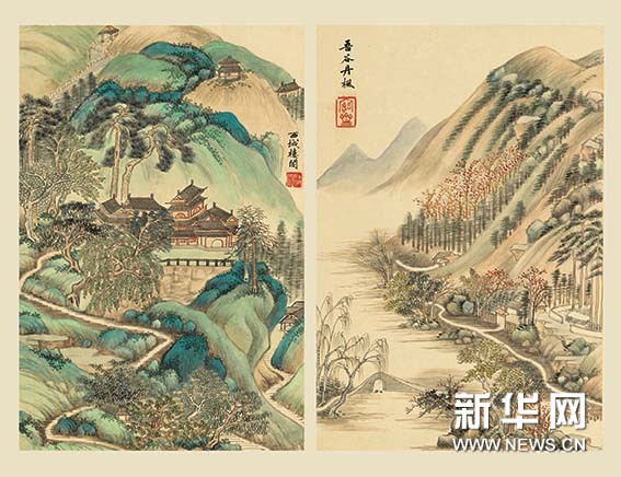 吴大澂 《临王廉州虞山十景册》 (册页 十开选二)