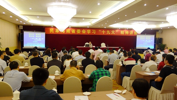 陈马林说到,中共 “十九大”胜利闭幕以来,民革省属各组织积极开展学习十九大精神活动,为更深入学习贯彻中共十九大精神和中共海南省委七届二次、三次全会精神,增强“四个意识”,深刻领会、全面把握十九大精神实质,我们邀请了原海南省政协常委,民革党员、海南大学王毅武教授为我们作“十九大”精神专题报告。