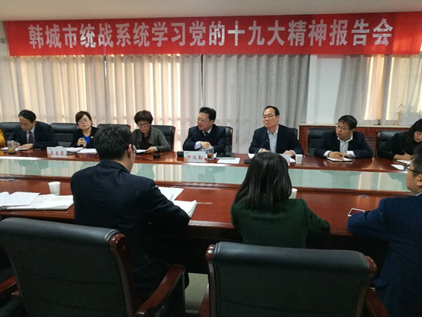 11月7日下午,中共韩城市委统战部在民主党派会议室召开了统战系统学习党的十九大精神报告会。民革韩城市委会领导班子参加此次会议,认真学习、注重落实。