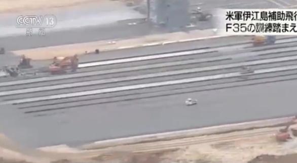 日本NHK 主持人:“通过对美军有关人员采访得知,对冲绳县伊江岛的美军辅助飞行机场、进行的改建工程从本月14日开始,为适应可以垂直起降的最新锐战斗机F-35未来训练需求,对机场跑道铺砌特殊混凝土,不过此举遭到了当地民众的强烈反对。 ”