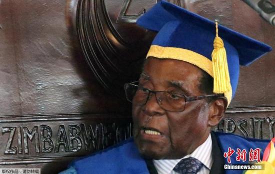 资料图:穆加贝在首都哈拉雷出席了一场毕业典礼仪式。