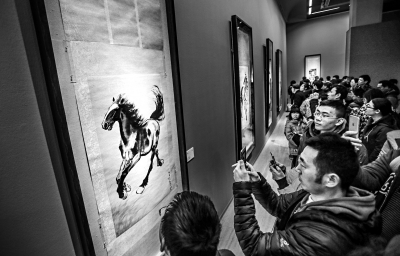 中国美术馆提供的数据显示,上周末两天接连刷新近年单日进馆人次纪录,周六为9383人次,周日更是突破一万人次。其实单日突破6000人次,就达到了美术馆要采取限流措施的“红线”。就连中国美术馆馆长吴为山也为排队参观者所打动,叮嘱执勤人员在保证安全的前提下,加快安检速度,让更多人有机会与这些国宝面对面?!罢飧鲎酆闲驼估朗?0世纪中国美术最高水平的展示。在这个时候推出,就是要为今天的人们提供范本参照?!彼樯?,展厅里徐悲鸿的“马”图,从马蹄子、马鬃以及马腿各个结构来看,没有成百上千张速写,是达不到如此境界的。