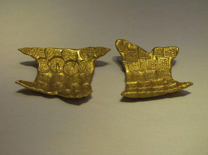 郢褠和卢金1979年出土于安徽省寿县东津乡花园村,目前藏于中国国家博物馆,都是战国时期由纯黄金制作的楚国货币。