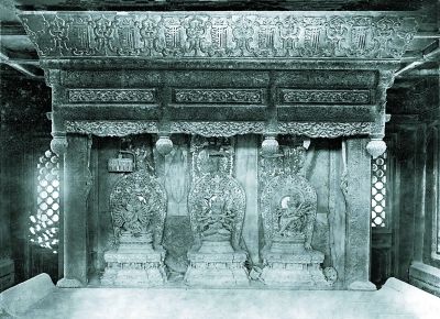 雨花阁是根据乾隆时代的国师三世章嘉呼图克图的建议,模仿西藏阿里古格托林寺坛城殿修建的一座密宗佛堂。雨花阁虽然外观三层,内部却严格按照藏密的事、行、瑜伽、无上瑜伽四部设计为四层的结构,每层分别供奉着藏密的四部神祇。雨花阁是目前我国现存最完整的藏密四部神殿,对于研究藏传佛教具有重要意义。本片摄于20世纪初。
