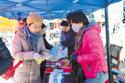 全区就业惠民政策宣传活动现场工作人员正在向过往的市民发放就业惠民政策宣传单。记者次旺唐斌摄