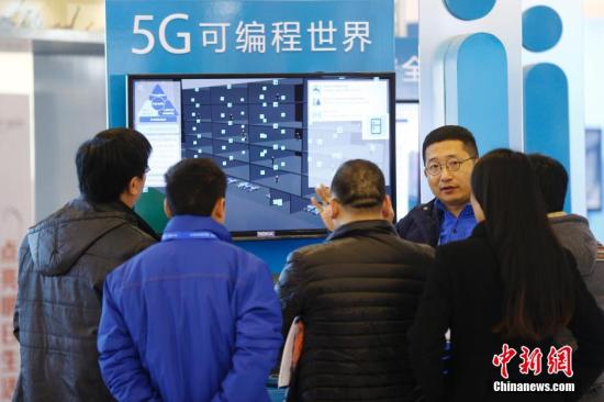 资料图:参观者在“互联网之光”博览会上听取参展商介绍“5G可编程世界”。 中新社记者 盛佳鹏 摄
