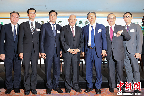 全国政协副主席董建华(中)、中联办副主任林武(左三)等嘉宾出席活动。中新社记者谢光磊摄