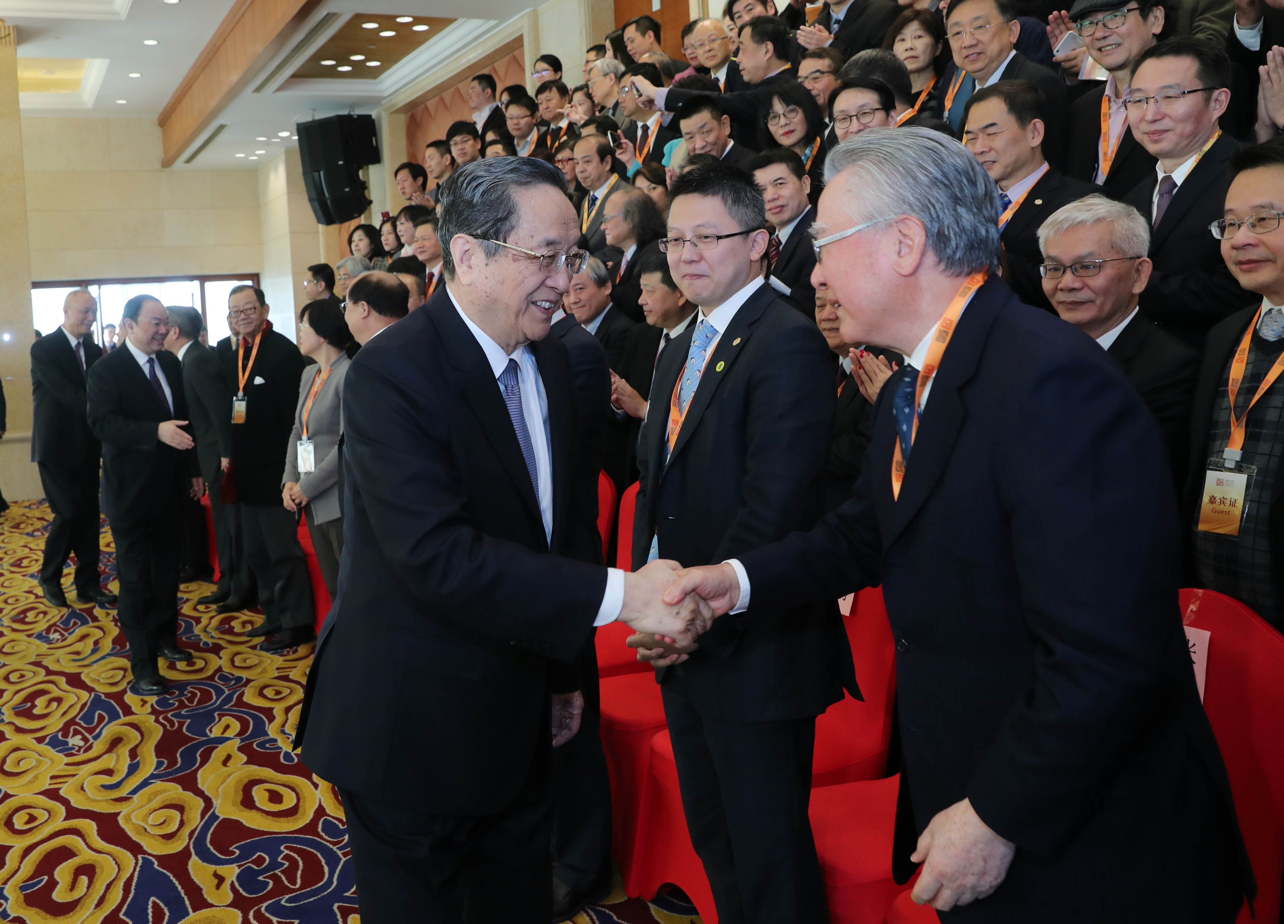 俞正声指出,中共十九大确立了习近平新时代中国特色社会主义思想的历史地位,描绘了决胜全面建成小康社会、夺取新时代中国特色社会主义伟大胜利的宏伟蓝图。两岸同胞同属中华民族,是命运与共的骨肉兄弟,是血浓于水的一家人,要携手努力推动两岸关系和平发展,共创属于全体中国人的美好未来。我们秉持“两岸一家亲”理念,愿意率先同台湾同胞分享大陆发展机遇;扩大两岸经济文化交流合作,逐步为台湾同胞在大陆学习、创业、就业、生活提供与大陆同胞同等的待遇;推动两岸同胞共同弘扬中华文化,促进心灵契合。我们愿以最大的诚意,尽最大努力,团结两岸同胞,共同维护台海和平稳定,推动两岸关系和平发展,争取和平统一的光明前景。我们坚持体现一个中国原则的“九二共识”,坚决维护国家主权和领土完整,坚决反对任何形式的“台独”分裂活动。