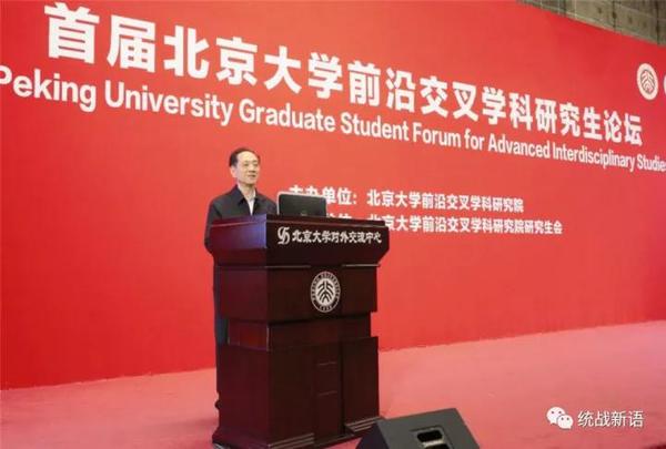 2017年4月9日,北京大学前沿交叉学科研究院院长韩启德在首届北京大学前沿交叉学科研究生论坛作主旨报告