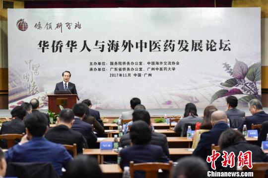 当天上午,由中国国务院侨办、中国海外交流协会主办,广东省侨办、广州中医药大学承办的华侨华人与海外中医药发展论坛在广州召开。