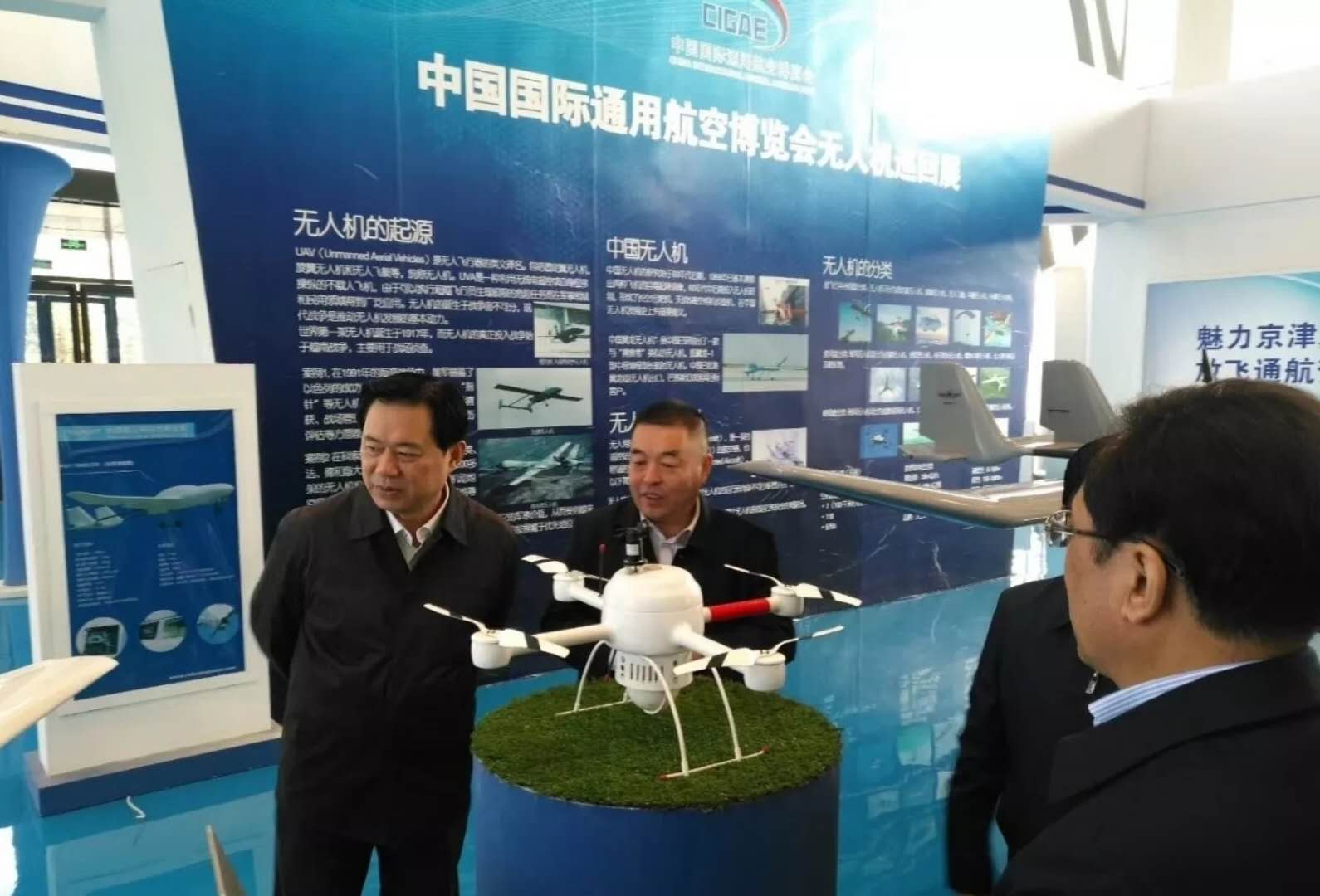 伴随着隆隆的马达声,一架架身披盛装的无人机直冲云霄,时而高空盘旋,时而向下俯冲,时而倒立静止,时而疯狂翻滚,比大型飞机的表演还要刺激,引得现场观众一阵阵感叹和惊呼。这边两架飞机刚刚降落,那边6只别致的“风筝”腾空而起,在空中翩翩起舞;这边一架直升机在空中快速闪转腾挪,犹如一只大蜻蜓般神出鬼没,那边两个“钢铁侠”呼啸而来,引来一片喝彩。11月17日,2017中国国际通用航空博览会在石家庄栾城机场隆重开幕,让世人的目光聚集到了中国的无人机产业。