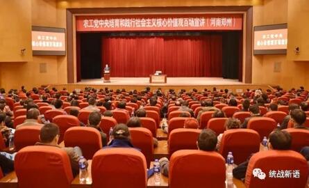 农工党组织开展培育和践行社会主义核心价值观“百场宣讲”,围绕中国梦主题,由来自基层的成员登台,结合岗位工作实际、个人成长经历,以饱满的热情、生动的语言、感人的事例,深情并茂地讲述心路历程,引起听众强烈共鸣。