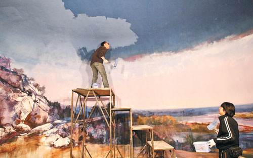 事实上,近两年马赛克材料已经逐步引起关注。在北京地铁、延安大剧院、江苏大剧院、重庆罗中立美术馆等国内多个重要公共建筑中,都采用了艺术品位高雅、制作精良的镶嵌壁画。就在刚刚完成移交仪式、由中国援建的越中友谊宫中,《友谊颂》与《辉煌乐章》两幅壁画,也采用了马赛克材料。但目前国内受过马赛克专业训练的壁画家依然屈指可数——从画稿到完成一幅镶嵌壁画,是一次再创作过程。从事镶嵌艺术创作,必须经过对马赛克材料本体的研究、规划及改造。