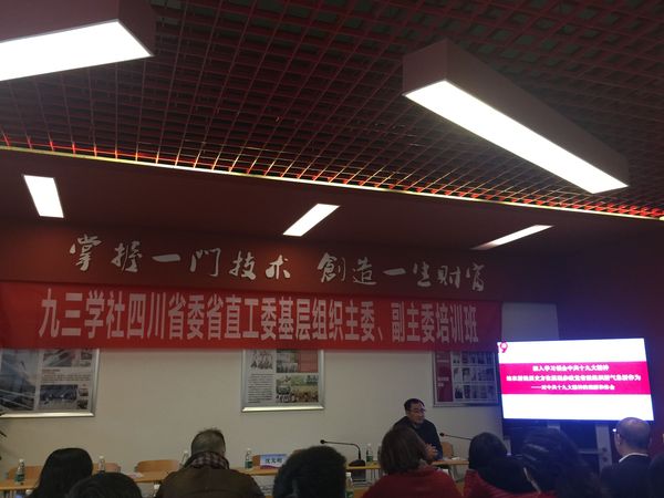 2017年11月29日上午,九三学社四川省直工委在四川爱华学院举行了基层组织主委培训班开班仪式。九三学社四川省委专职副主委沈光明出席并讲话。九三学社四川省委副主委、省直工委主委苏远东出席,省直工委副主委阳恩国、安鹏程、刘定辉、延华、王林峰、李?;?,省直工委各支社主委、副主委等50多人参加培训。