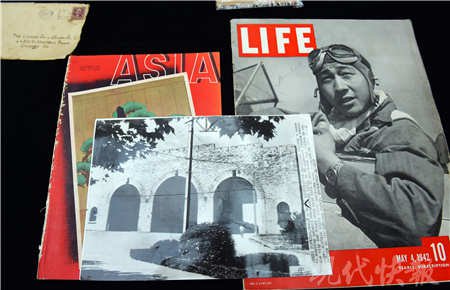 当天,鲁照宁向抗馆捐赠了援华美军的徽章、美国飞虎队逃生丝巾地图、《美国陆军航空队必备手册》以及二战时期的杂志、宣传卡、老照片等。