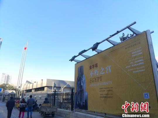 图为河南省博物院门前陈列的“金字塔·不朽之宫”海报,该展览将于2017年12月8日至2018年3月22日在河南省博物院展览?!『略啤∩?/p>