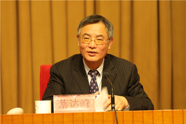 民进第十四届中央委员会主席蔡达峰发表讲话。