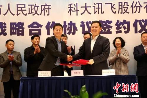 四川省乐山市人民政府与科大讯飞股份有限公司签订战略合作。钟欣摄