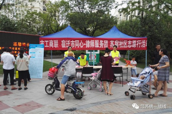 搭建社会服务平台,市、区两级联动成立全市统一战线“同心·律师服务团”,积极组建工商联法律服务团、台商法律服务团、园区“律师服务工作站”、村(居)律师工作室、“同心·送法律”服务队,开展“送法律进村(社区)”“律师解惑”“法律援助”等活动20多场次,受益群众达2000余人。
