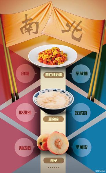 冬至应该吃什么?豆腐脑是甜的还是咸的?粽子里该包蜜枣还是香肉?……生活中,我们常常遇到这些令人忍俊不禁的南北差异。上周,中国青年报社社会调查中心联合问卷网,对2000名受访者展开的一项调查显示,76.3%的受访者觉得南北差异会对交朋友、谈恋爱造成影响。面对南北差异,63.6%的受访者认为应和而不同,彼此尊重和理解。
