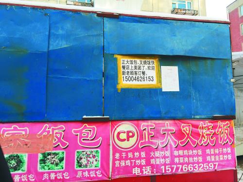 近日,生活报记者在采访美团外卖食品经营许可证问题的过程中发现,位于哈尔滨市香坊区文治二道街上的一个名为“正大叉烧饭”的路边摊上贴着两张纸,一张为监管部门下达的“责令改正通知书”,另一张内容为“正大饭包、叉烧饭快餐店上美团了,欢迎新老顾客订餐?!鄙畋钦咄ü矢浇5囊晃谎弥?,最近相关部门整顿了校园附近的路边摊贩,所以这一条街上的路边摊快餐都不营业了。