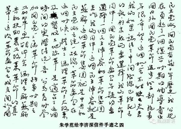 1948年 2月,朱学范写给李济深的信件手迹部分内容