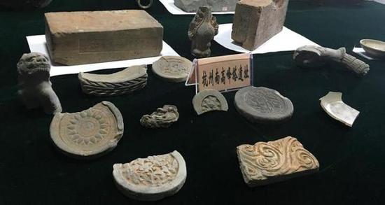 来自杭州市考古所的杨曦说,为了配合杭州市南高峰景观提升改造工程,杭州市文物考古研究所对南高峰塔遗址进行了考古发掘,发掘面积1350平方米,不仅确认了南宋时期南高峰塔的塔基以及道路、塔院等建筑遗址,还出土建筑构件、塑像、古代生活用具等文物90件。