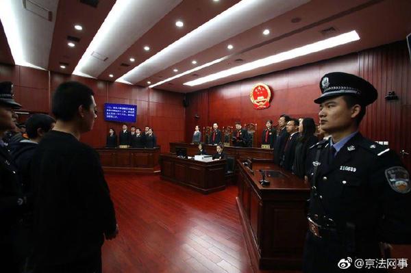 中国大陆北京市第二中级人民法院21日审理肯亚电信诈骗案,台湾籍主嫌张凯闵、林金德被判有期徒刑15年(图片来源:北京市法院官方微博)。