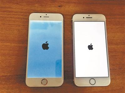 亮屏iPhone7模型机(左)与真机相比,可以假乱真摄影。 北京青年报记者 蒋若静 图