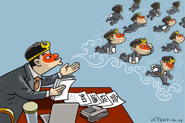 提及“文山会海”,一股老黄历特有味道扑面而来。如今,随着时间沉淀,这股味道越发“醇厚”。一些地方执行上级部署,不分难度大小、不分工作类别,千篇一律开会“说道”,领导干部整天疲于赴会、开会,一般干部疲于应付会议,虚耗精力。改变众人忙开会,无精力落实的尴尬局面,政策精神传达不能唯会议是举,开展、评价工作也不能以会议论英雄。简化会议,提高会议效能,摆正落实与会议的本末位置或许才是摆脱会议魔咒的可行之道。