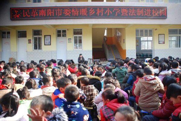 12月22日,民革南阳市委在卧龙区辛店中心小学开展情暖乡村小学暨法制进校园活动。