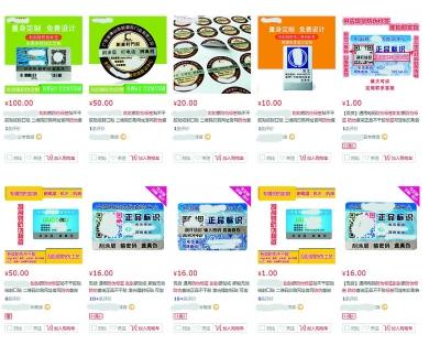 而想要得到这样的标签,不需要任何真正的“真品认证”手续,只要在电商网站上直接购买,量大的话,平均每个防伪签仅几分钱。