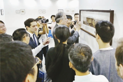 2016年11月20日,时任法国驻华大使顾山观看影易时代举办的“中国早期摄影名作收藏展” ,了解1850 - 1949年间来华的法国摄影名家。 周国献 摄
