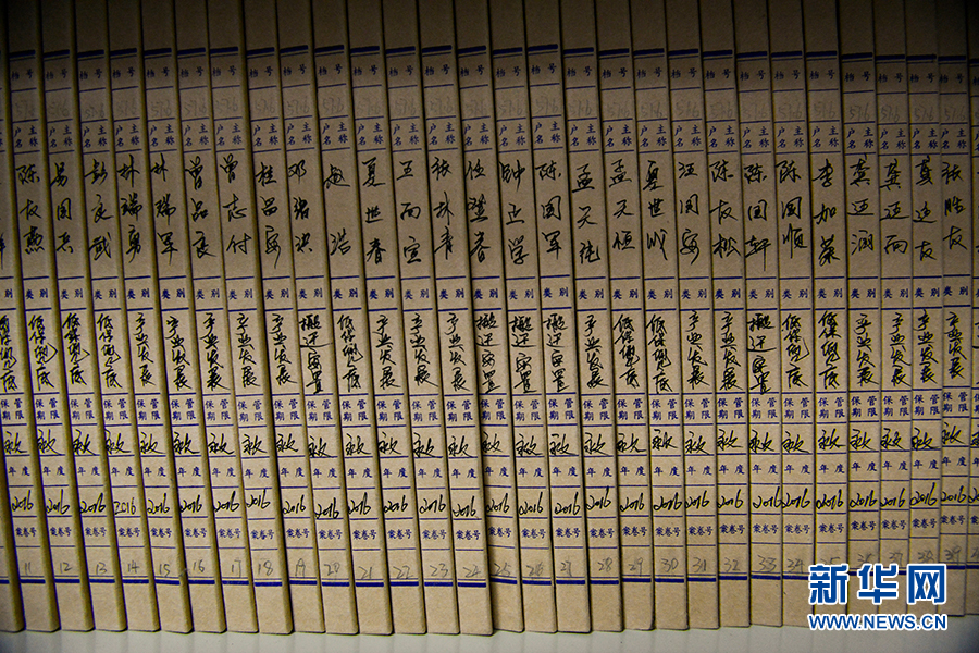 图为王英整理的贫困户资料。新华网 李相博 摄