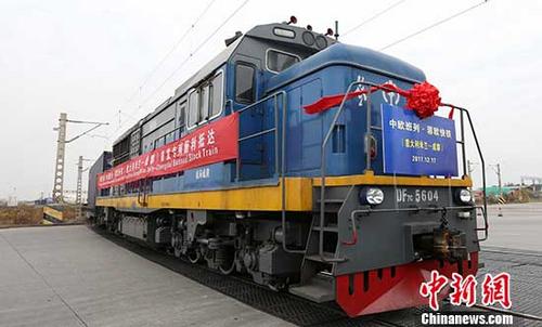 资料图:中欧班列·蓉欧快铁(意大利米兰-成都)首趟测试班列顺利抵达成都国际铁路港。中新社发 白桂斌摄