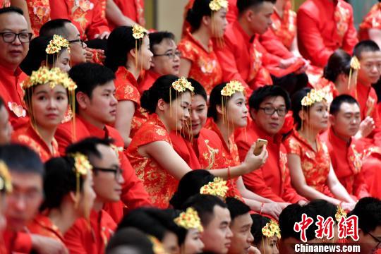海峡论坛首次举办两岸百位新人集体婚礼。王东明摄