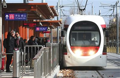 列车开动后,车厢内不少专程过来体验现代有轨电车的乘客纷纷举起手机拍照留念。家住在巴沟附近的市民陆女士告诉记者,“我和爱人喜欢爬山,以前我们去香山都得坐630路或者563路公交车,不堵车的话也需要1个多小时,要是赶上桃花节和红叶节,堵两个小时都不新鲜,现在只用半个多小时,方便了不少?!?/p>