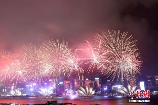 资料图片:香港维多利亚港举行烟花汇演。中新社记者谢光磊摄