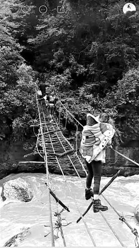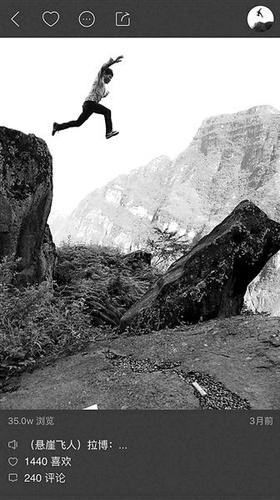 现在,村里24岁的彝族小伙儿拉博已经成为首批网红之一。2016年11月19日,垂直距离约800米、总共约1000级台阶的悬崖村钢梯工程竣工。拉博就是钢梯施工队的一员,在山崖最陡峭的一段,他亲手打下了固定的钢钉。钢梯完工后,拉博特意去“跑”了一遍,从山顶到山脚仅耗时18分钟,而这段路普通人可能需要一个半小时。从小放羊的拉博习惯了在山间奔跑跳跃,爬天梯、过吊桥、放牛羊这些生活日常,在5个月的时间里为他带来了12.6万的粉丝。