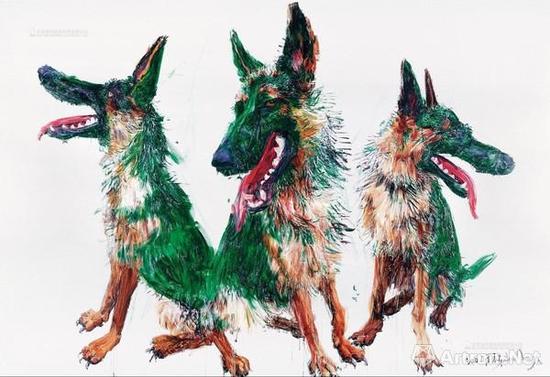 周春芽《3个TT》布面油画 220×320cm 2007年作 2017年北京保利秋拍成交价:2357.5万元