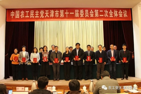 2018年1月3日,农工党天津市委会召开十一届二次全委会议?;嵋槿险嫜肮岢故糯缶瘛⑴┕さ呈缶?、中央经济工作会议精神和天津市委十一届二次全会精神;审议通过天津市政协副主席、农工党天津市委会主委沈中阳所作的工作报告。听取了市委会监督委员会2017年工作报告。市委会副主委侯欣一、乔佑杰、王毅斋、许洪玲、马延和、汤欣、张智龙和市委委员出席会议。