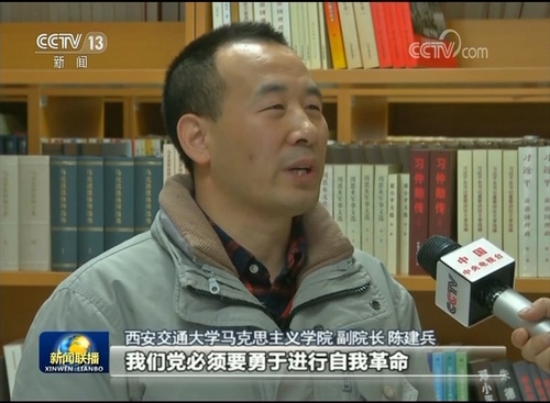 西安交通大学马克思主义学院 副院长 陈建兵:新时代坚持和发展中国特色社会主义,我们党必须要勇于进行自我革命,不断推进马克思主义中国化,用习近平新时代中国特色社会主义思想武装头脑,要坚持抓作风建设一抓到底,要坚持反腐败斗争永远在路上。唯有如此,我们党才能永葆生机,才能答好时代给我们出的考题,才能向人民交上一份满意的答卷。