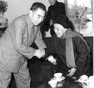 1963年元旦,周恩来热情地和何香凝握手致意,向她祝寿