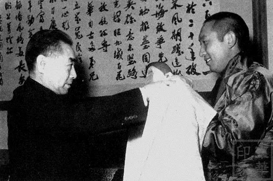 1960年代,班禅额尔德尼?确吉坚赞向周恩来敬献哈达
