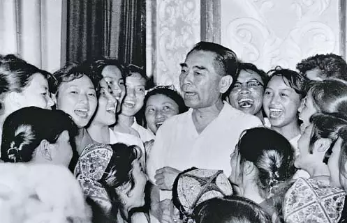 1965年7月,周恩来在新疆乌鲁木齐与各族青年在一起