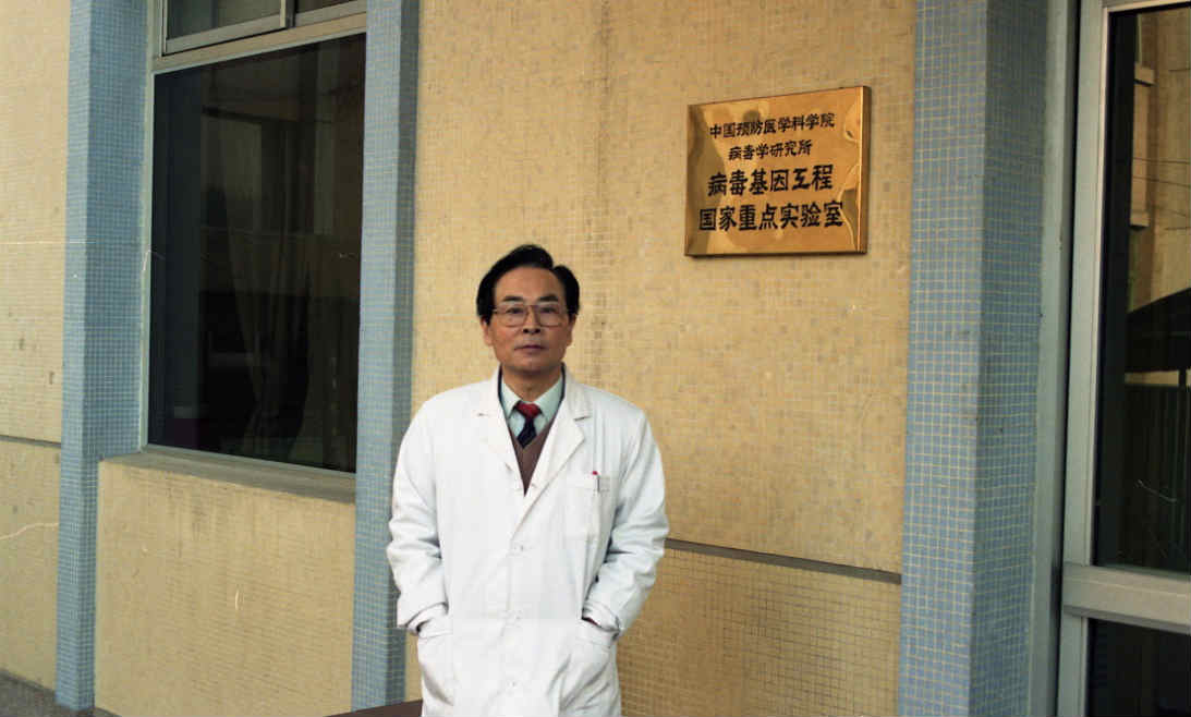 侯云德院士在病毒基因工程国家重点实验室大楼门口留影